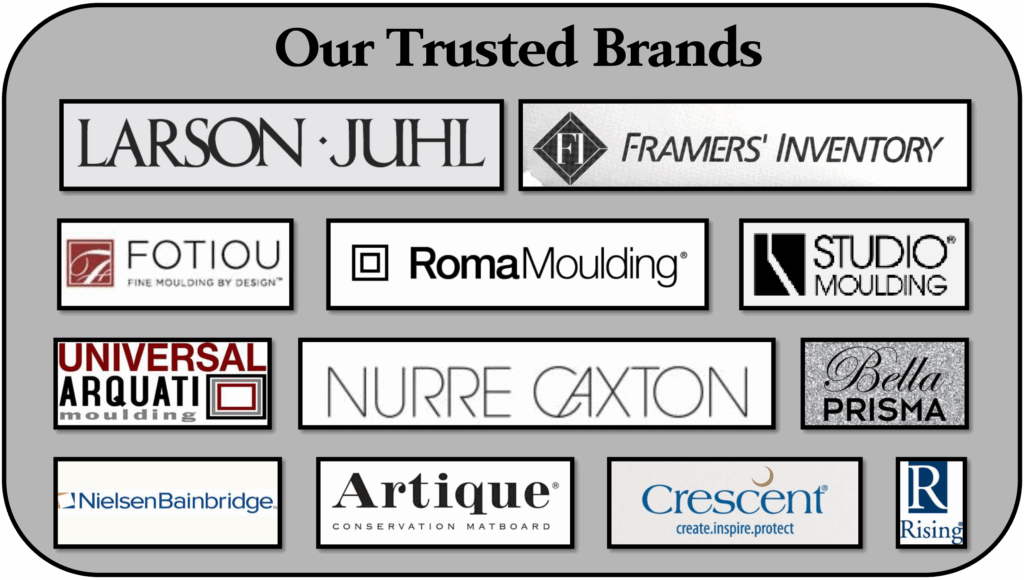 We have 1000’s of special order frames available from nationally recognized suppliers. We feature only conservation matting in our shop and have 100’s of colors, textures and fabric styles available. Let us help you design framing that will bring out the best in your artwork and last a lifetime.