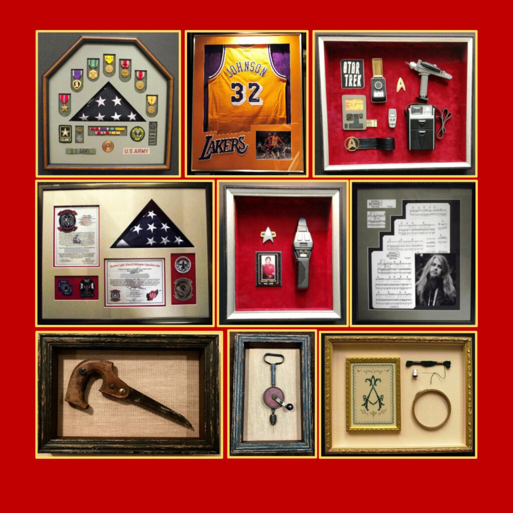 We provide a full-variety of picture framing services from simple metal frames to complex and unique collages and shadowbox framing.