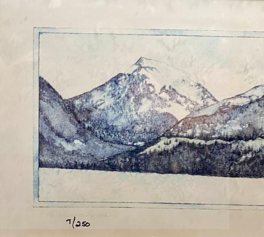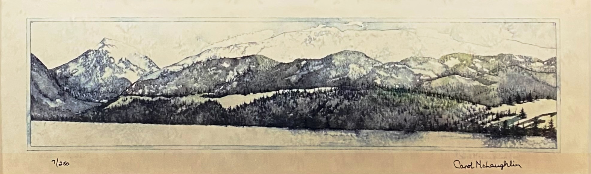 This is a signed and numbered print by Northwest artist Carol McLaughlin. From a private consignment-framed as shown. Image is 17 3/4″ x 5 1/2 “